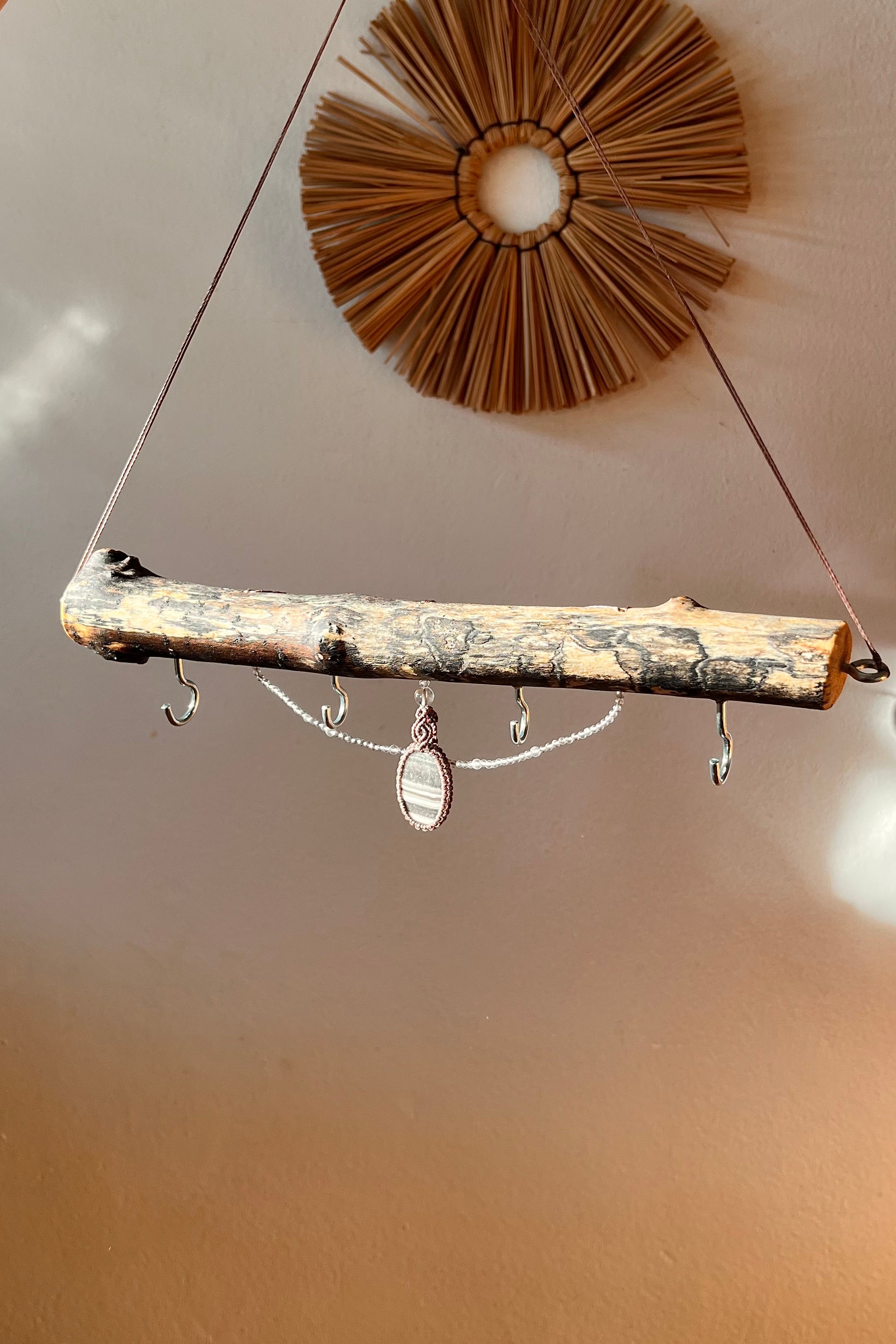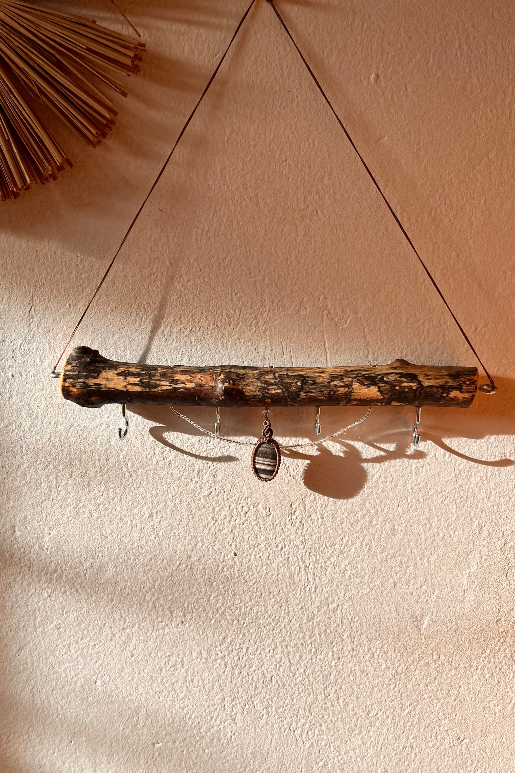 Ergänzt wird das Holz durch Makramee mit eingefassten Schmucksteinen, wodurch jedes Stück zusätzlich veredelt wird. 🤎