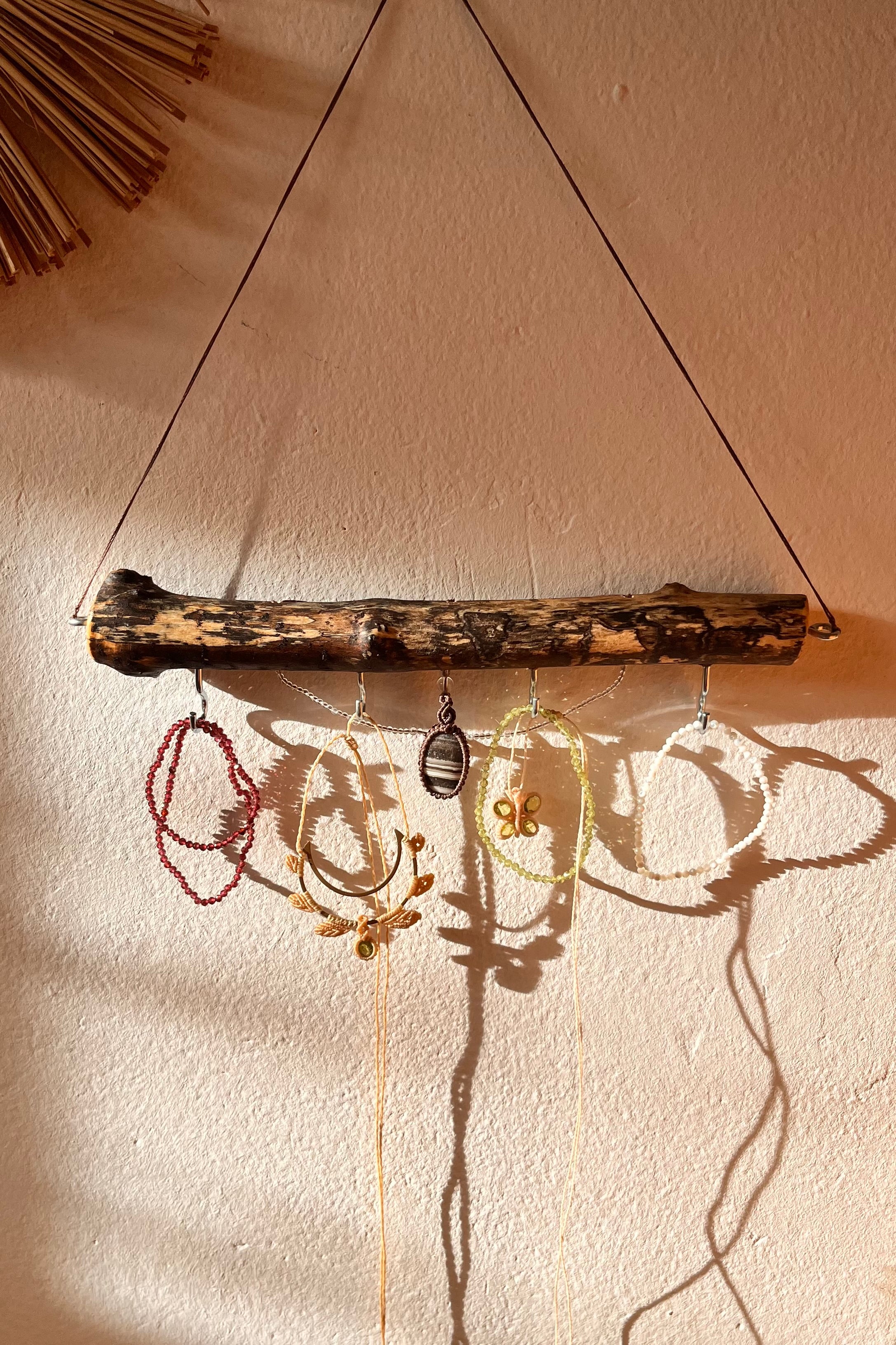 Du siehst: Mein Erlenasthänger ist dafür gemacht, all Deine Dinge stilvoll zu platzieren. Ob Ketten, Armbänder, Ohrringe oder sogar Schlüssel, Geldbeutel und Taschen mit dünnen Henkeln - alles darf hier seinen Platz finden.