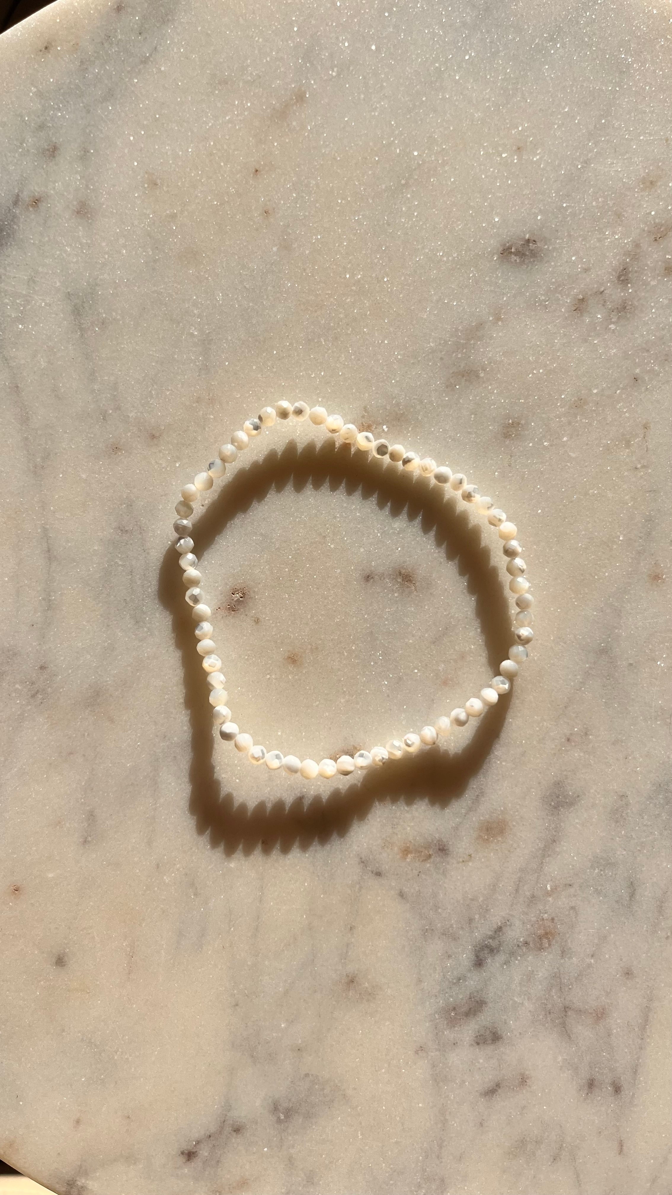 Dieses zarte, facettierte Perlmutt Armband besteht aus feinen 3mm Perlen und begeistert durch seinen eleganten, dezenten Glanz. Die Facettierung verleiht den Perlen ein wunderschönes Funkeln bei jeder Bewegung und macht das Armband zu einem stilvollen Begleiter im Alltag sowie zu besonderen Anlässen. 💫