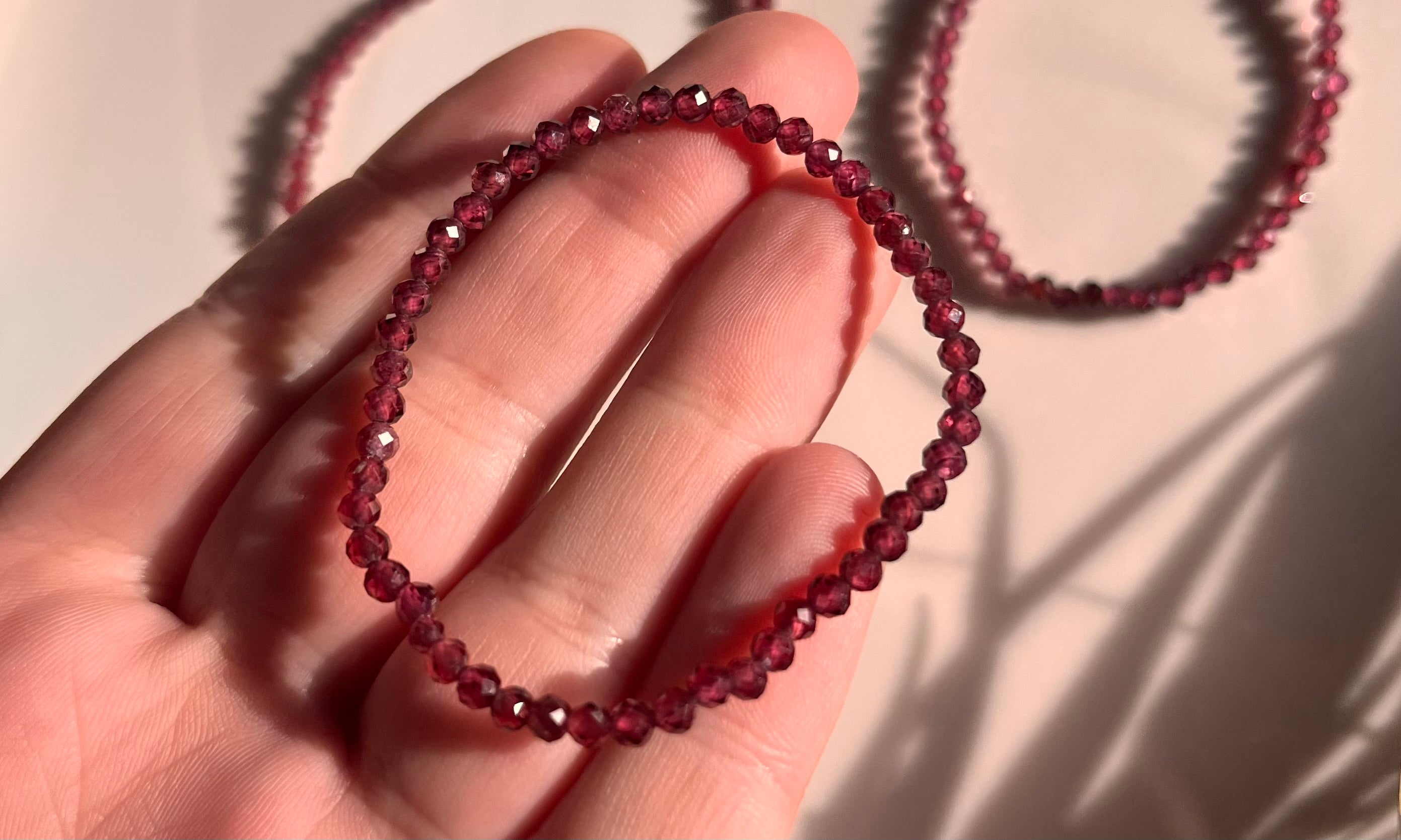 Dieses zarte, facettierte Granat Armband besteht aus feinen 3mm Perlen und begeistert durch seinen eleganten, dezenten Glanz. Die Facettierung verleiht den Steinen ein wunderschönes Funkeln bei jeder Bewegung und macht das Armband zu einem stilvollen Begleiter im Alltag sowie zu besonderen Anlässen. 💫