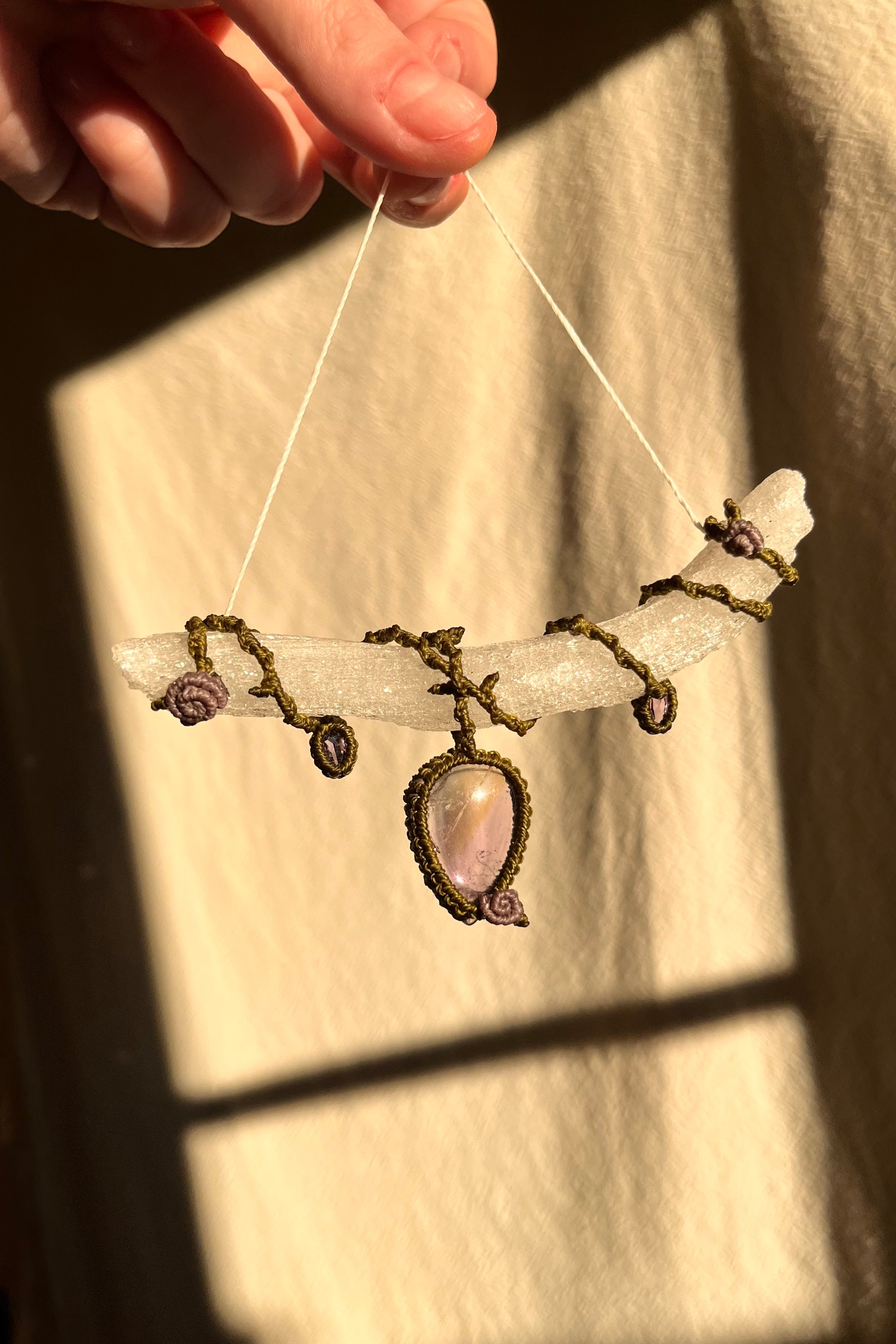 Selenit Locke x Ametrin x facettierter Amethyst Rosen Raumbehang